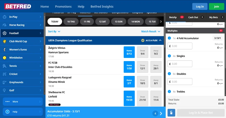 The Betfred app and website are major attractions for bettors placing accumulators through their Acca Flex promo. That’s due, in no small part, to the Acca Insurance. You can add football and sports picks to your parlay, set a stake and confirm. If only one selection lets you down, Betfred will refund your stakes, allowing you to place another bet.