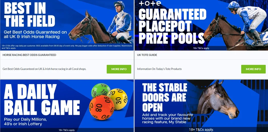 Coral is renowned for giving customers more. More value, markets, secure payment methods, and promotions. They also offer more options each way to Grand National bettors. Pick your runner, place an each-way bet, and you’ll enjoy several more places than the flat four. Paying more places increases your chances of landing a profit.