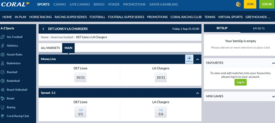 Coral is well clear of the chasing pack when it comes to Super Bowl specials. Gamblers enjoy promotions, including free bets and cashback on the main event. There’s also enhanced odds, profit boosts, extra places each way, and other favourites.