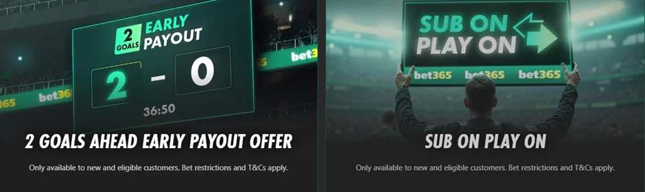 Bet on a qualifying football market from over 80 popular competitions, and bet365 will settle your wager as a winner if your team takes a two-goal lead. It doesn’t matter who scores and when they find the net. You’re looking for that cushion.