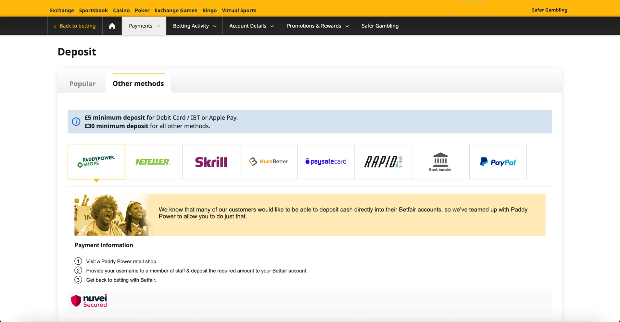 - Cash (through a Paddy Power shop)