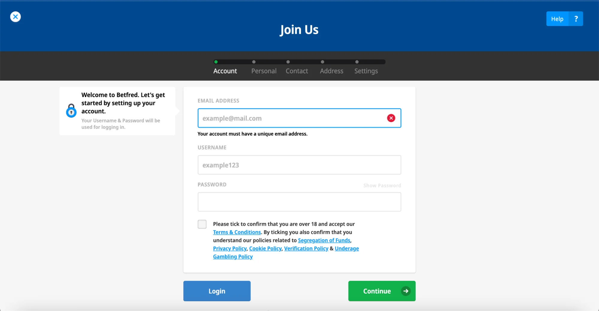 To become registered and open a Betfred account: