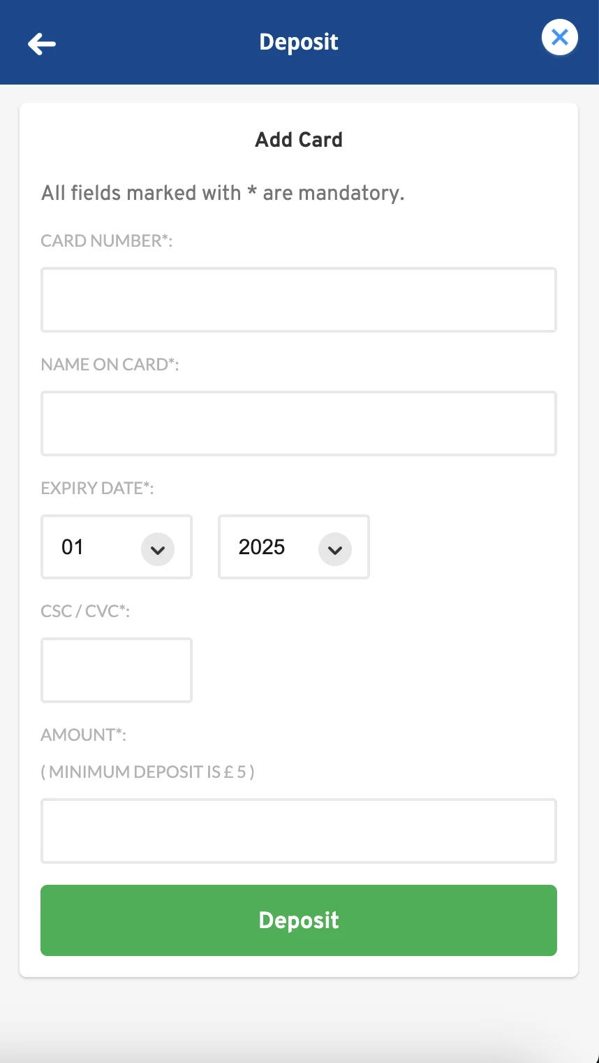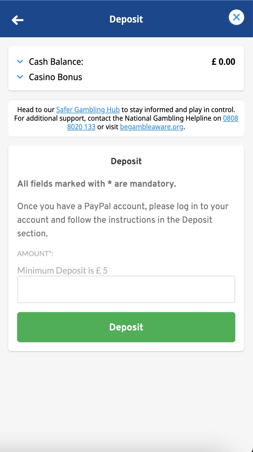 Make a minimum deposit of £5+ and select ‘Deposit’