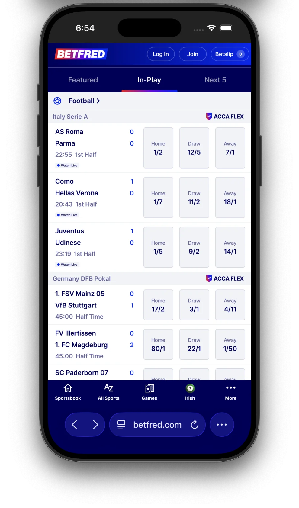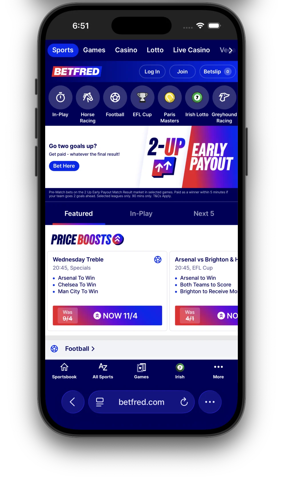 Click any link to Betfred you see on this page or website, and tap the Join button at the top of the homepage.