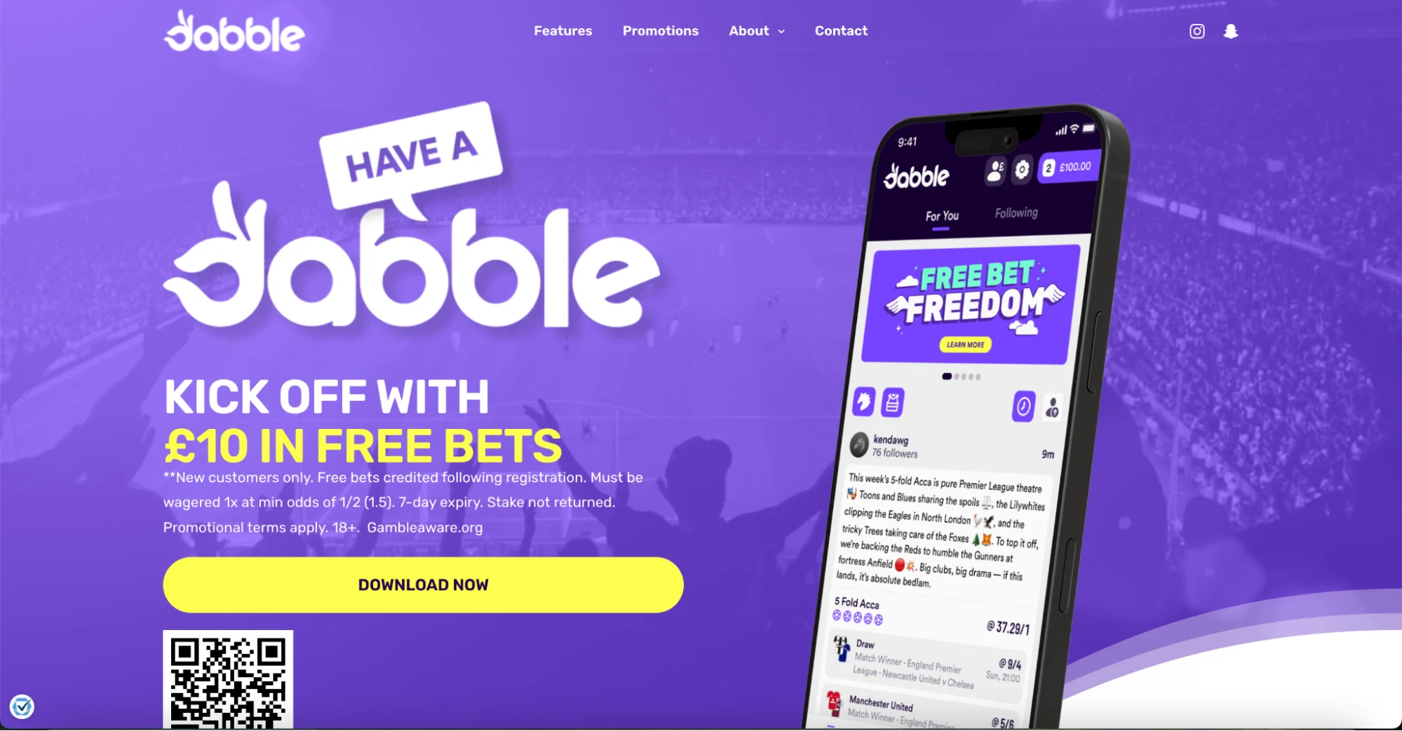 Dabble is an emerging UK sportsbook aiming to disrupt the highly competitive mobile betting space. The operator works solely on mobile, as an app is required to play. Bettors cannot access a betting platform on a desktop.