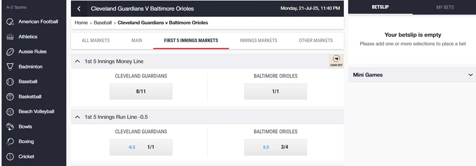You can focus on making a strong start to the match by betting on a run to be scored in the first inning. It’s a simple yes-or-no option, giving you a 50% chance of making a profit.