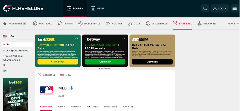 Now you know how to research your baseball picks, I’ll explain how to use Flashscore to access the most up-to-date and reliable information. Flashscore is packed with features that are invaluable when taking on the betting traders.