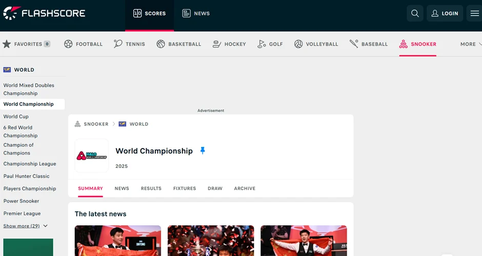 Visit the snooker tab on Flashscore and select the relevant tournament. You can then view the full tournament bracket, which is worth its weight in gold when predicting the outright champion or assessing how a player might make it all the way to the final and their most likely opponent.