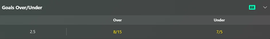 Using the above example, taken from the Club World Cup match between PSG and Bayern Munich in July 2025, the bookmaker set its total goals line at 2.5. You’ll get 8/15 if you bet on over 2.5 goals, which is three or more for both teams combined, and odds of 7/5 for fewer than three goals.