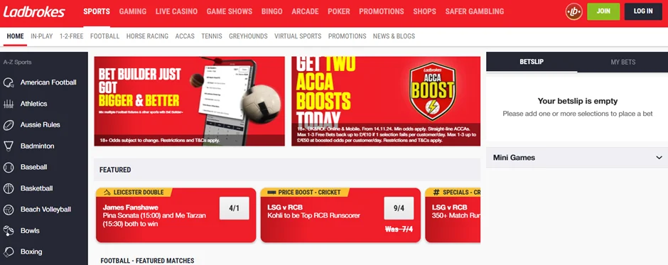 The welcome bonus is strictly for new players. If you already have an account with Ladbrokes, you can access a long list of recurring deals. Click on the promotions tab now and you’ll see free bets, enhanced odds, cashback, profit boosts, extra places each-way, and more. There’s a promo to suit every sport, bet and budget.