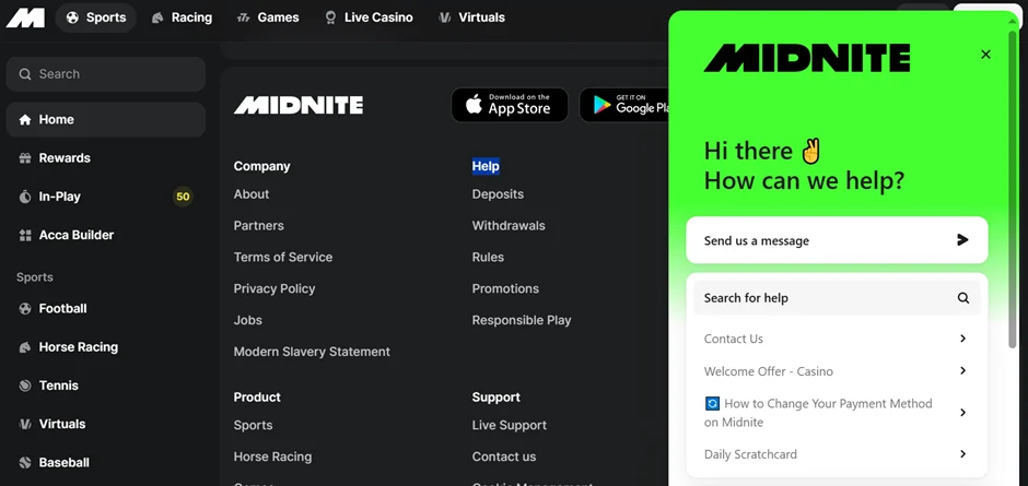 If you ever encounter an issue when using the Midnite service, you can troubleshoot using the frequently asked questions page. Find the question that best suits yours and click for a helpful answer. You can also speak to a member of the customer care team through Live Chat or the email channel.