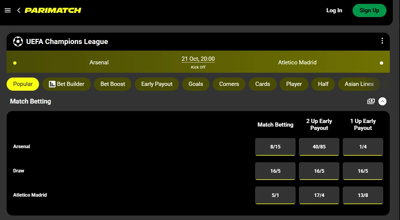 Winning limits depend on the sport, competition, and market you bet on. You’ll find more information on payment caps in the Parimatch terms and conditions on the website and app.