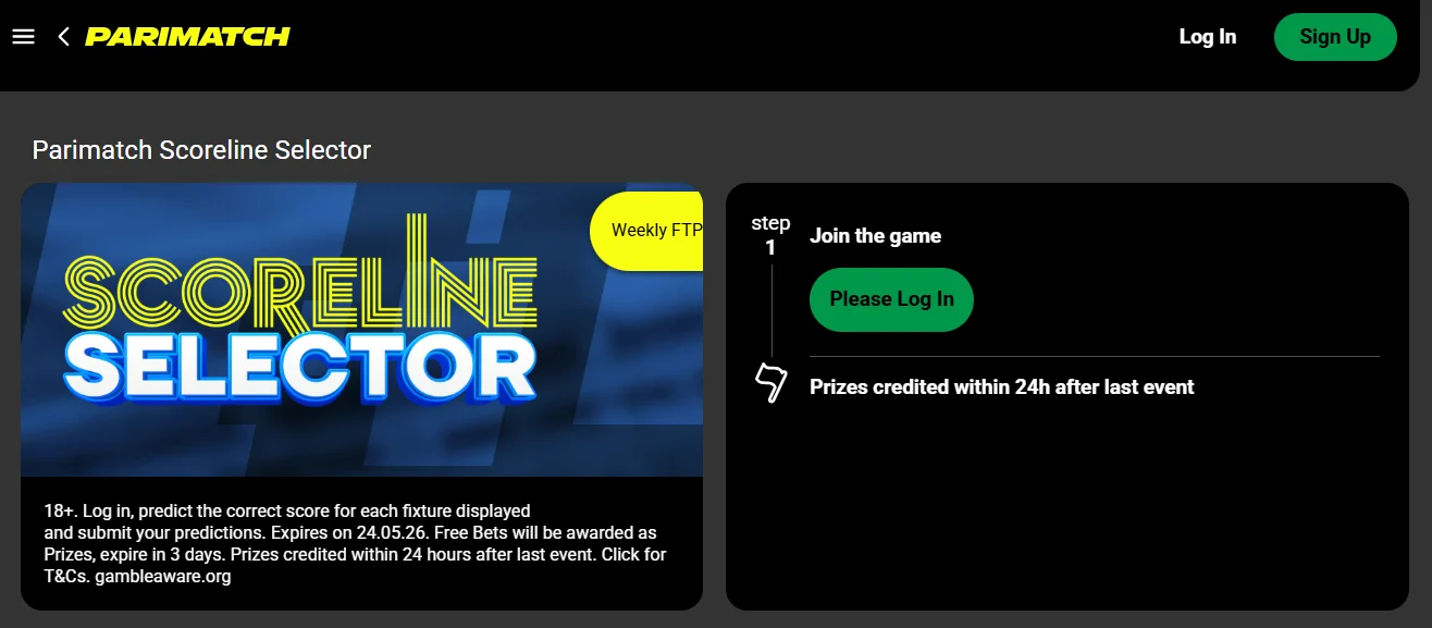 Parimatch select the top football matches each week and challenges you to predict the final score in each. The more correct picks, the more free bets and prizes you’ll win.