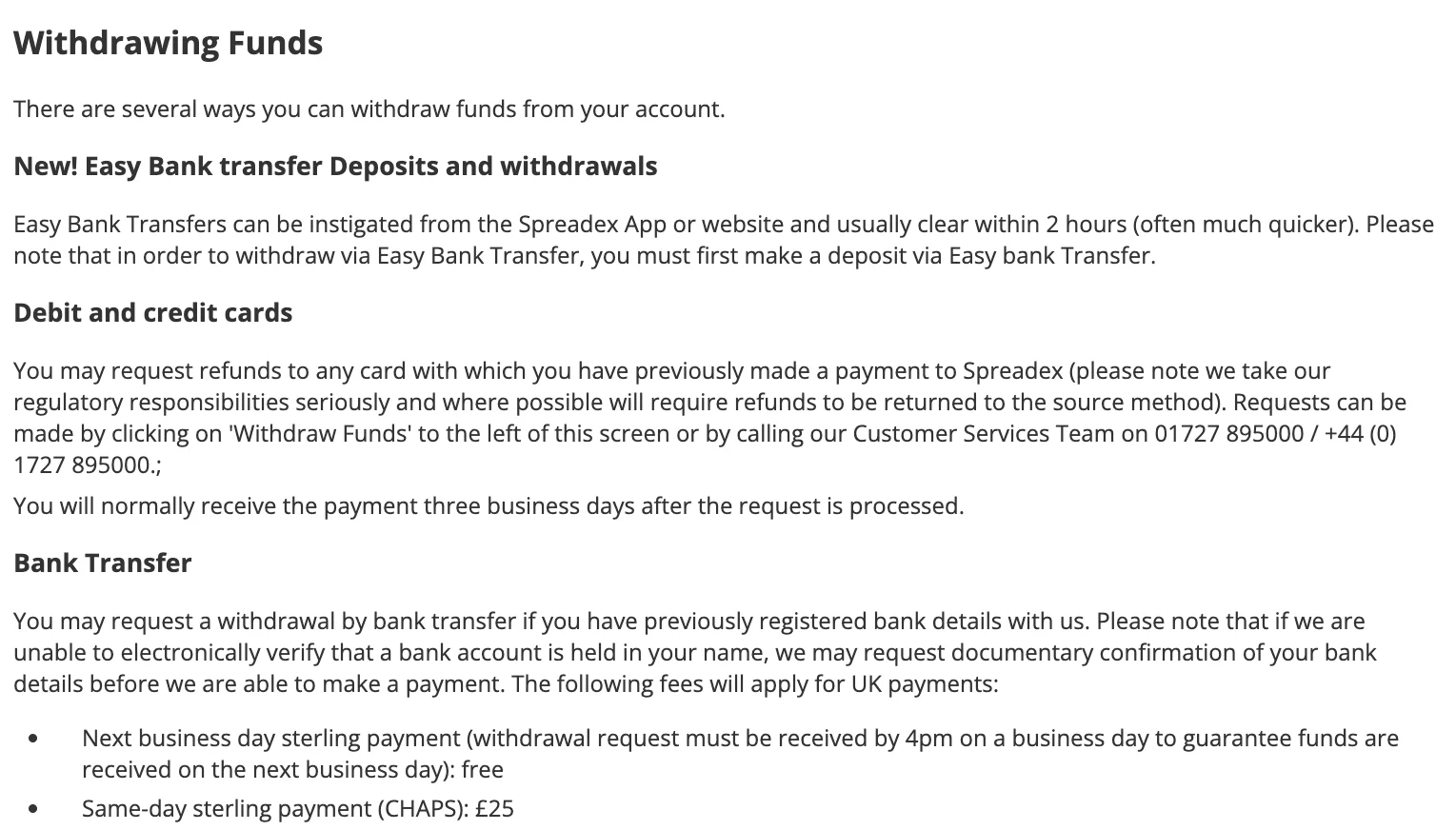 SpreadEx aims to complete the withdrawal process quickly, allowing you to use debit cards and bank transfers as the primary method.