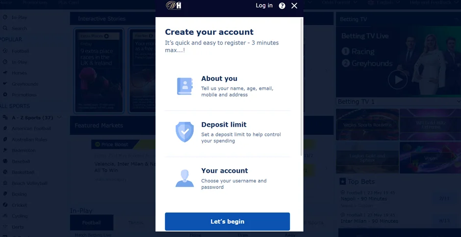 - 8.Account creation: How to Register and Start Betting With William Hill?
